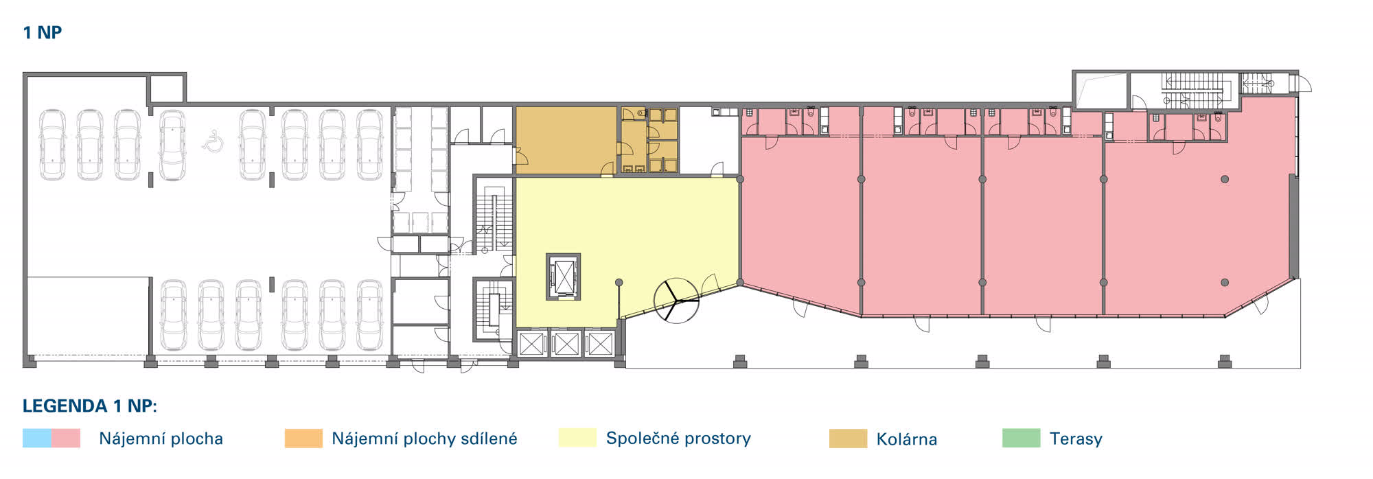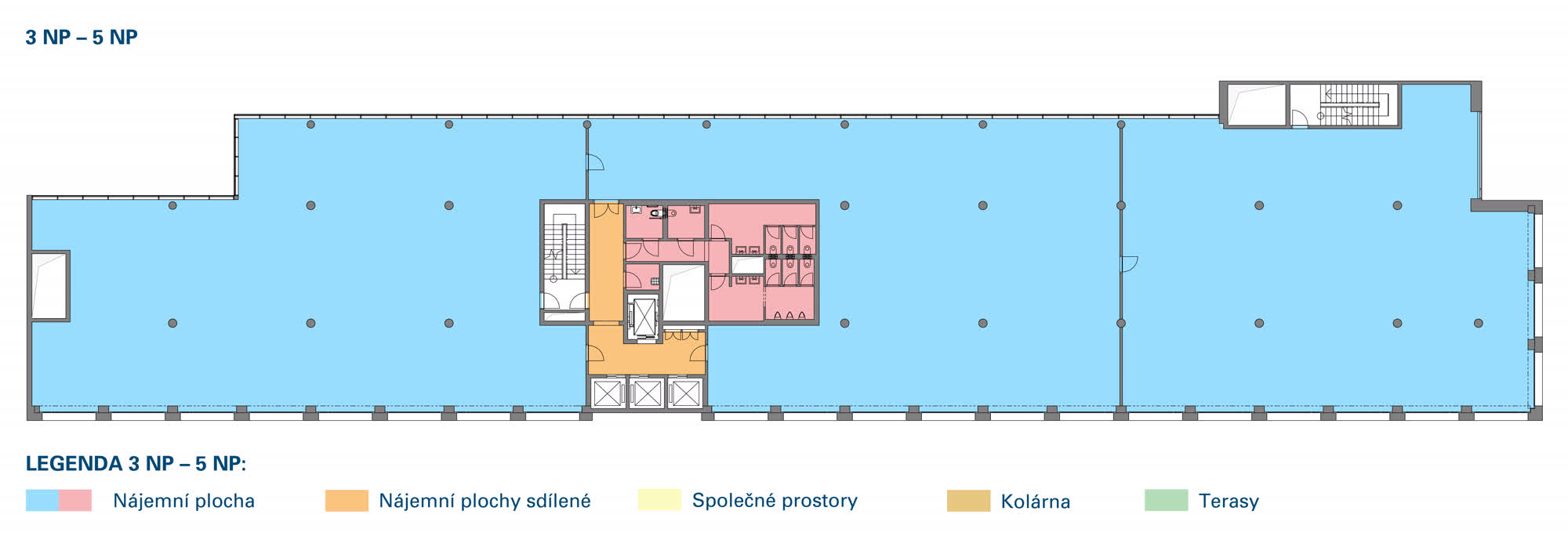 • možnost dělení až na 3 samostatné nájemní jednotky na podlaží